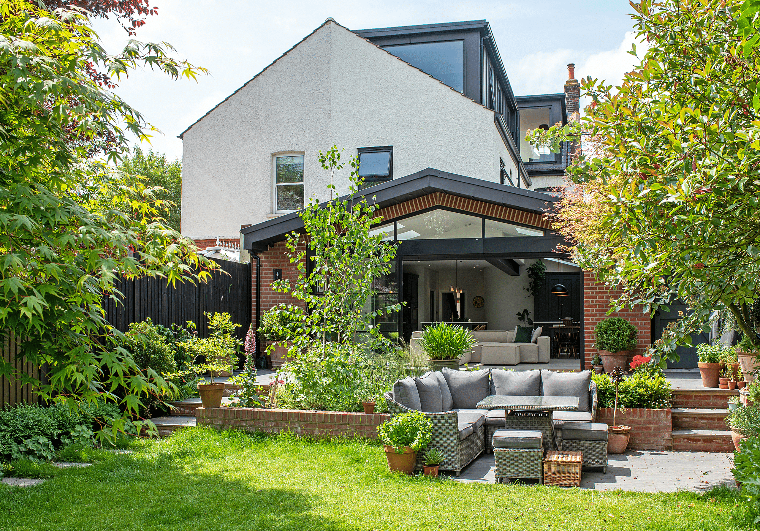 Transform this tired, semi-detached, two storey house to give our clients a huge open plan, family living space, complete with modern, bespoke Kitchen and fully functional island. Total renovation throughout and creation of an additional split level Master bedroom with balcony. This complete enhancement was achieved with a single storey extension and loft conversion.