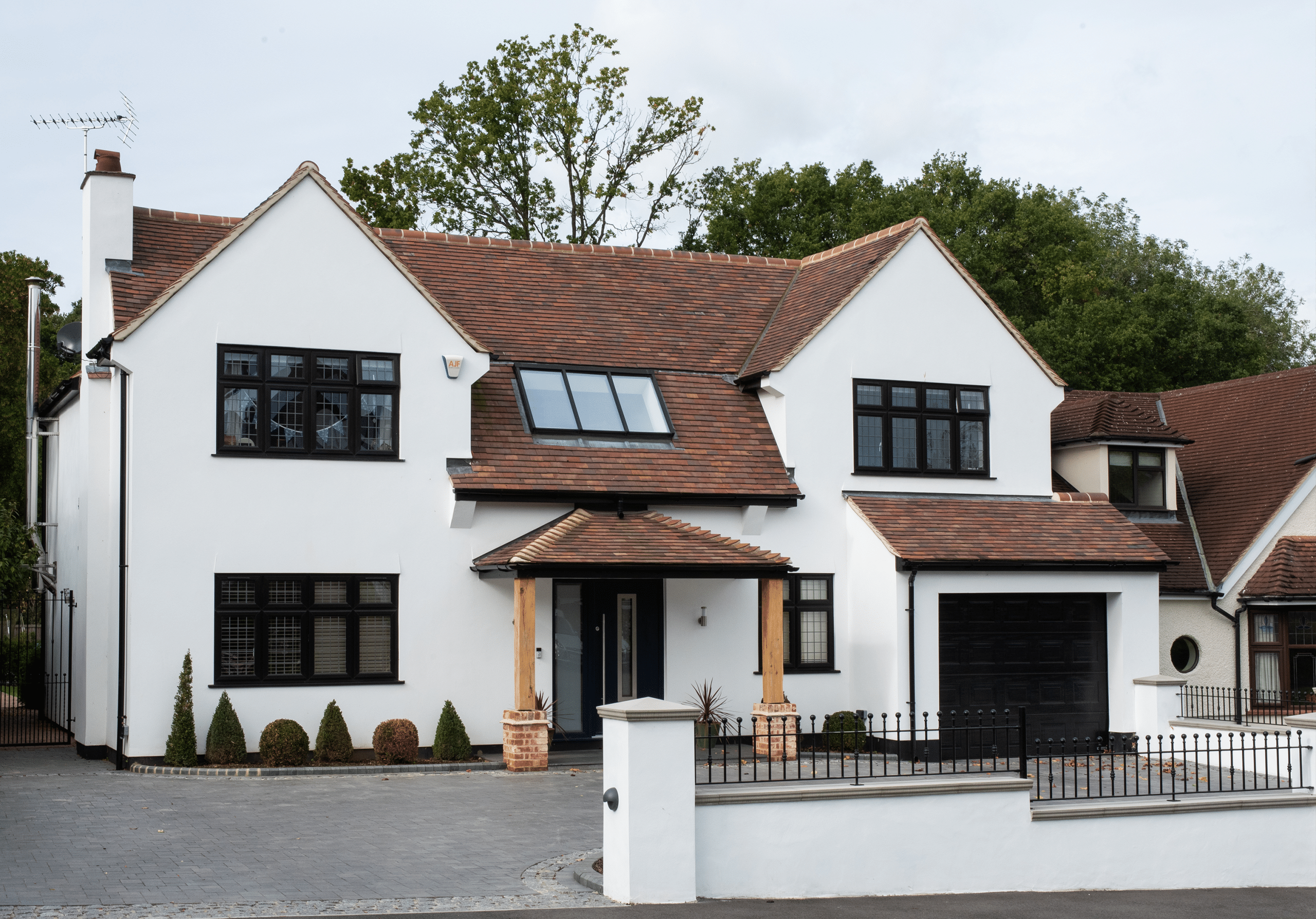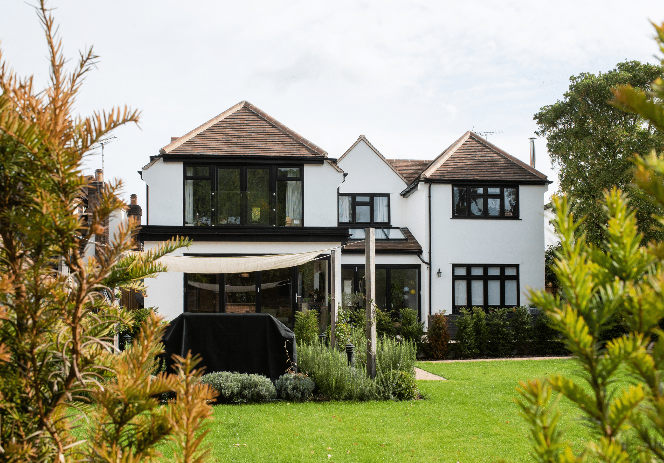 Our client’s purchased this detached property with a view to completely modernise it throughout. The tired exterior was completely transformed using a fresh white render finish. The old glazing was replaced with a mixture of traditional glazing at the front and modern glazing with simple black frames at the rear. The double and single storey rear extensions gave our clients a huge open plan, family living space, complete with modern, bespoke Kitchen and large island. The fully glazed bifold doors combined with the large glazed lantern fill the space with light and garden views. The complete enhancement was achieved with both a single storey and double storey extension and extensive landscaping.