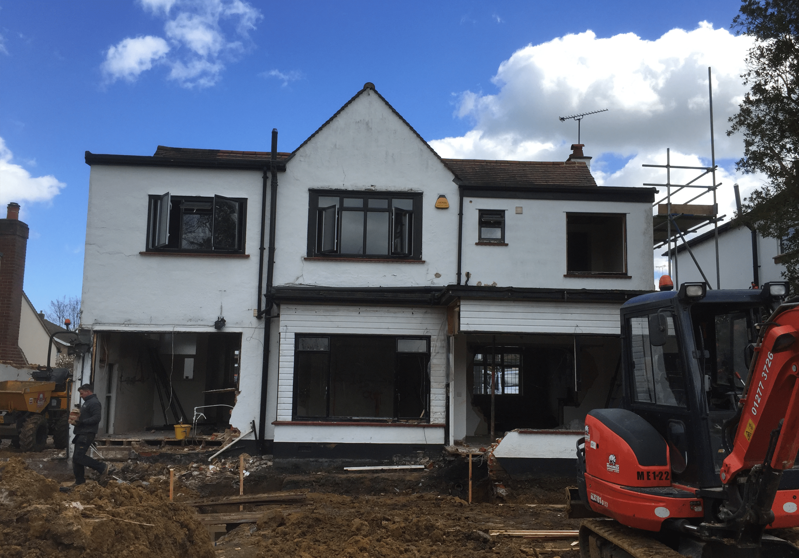- Blockwork, brickwork, new porch & render